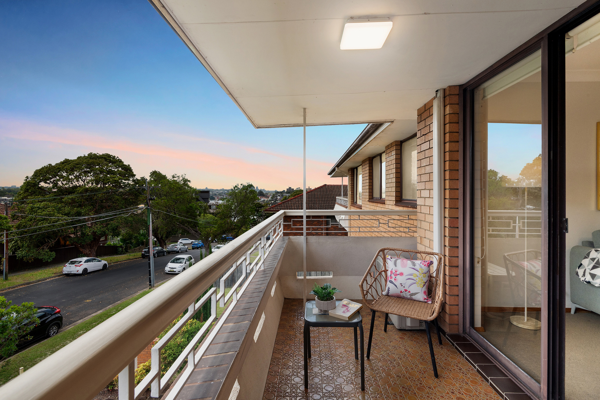 Due northerly sunlight bathes the well sized balcony, while easterly district vistas and water glimpses create a calm atmosphere to relax to.