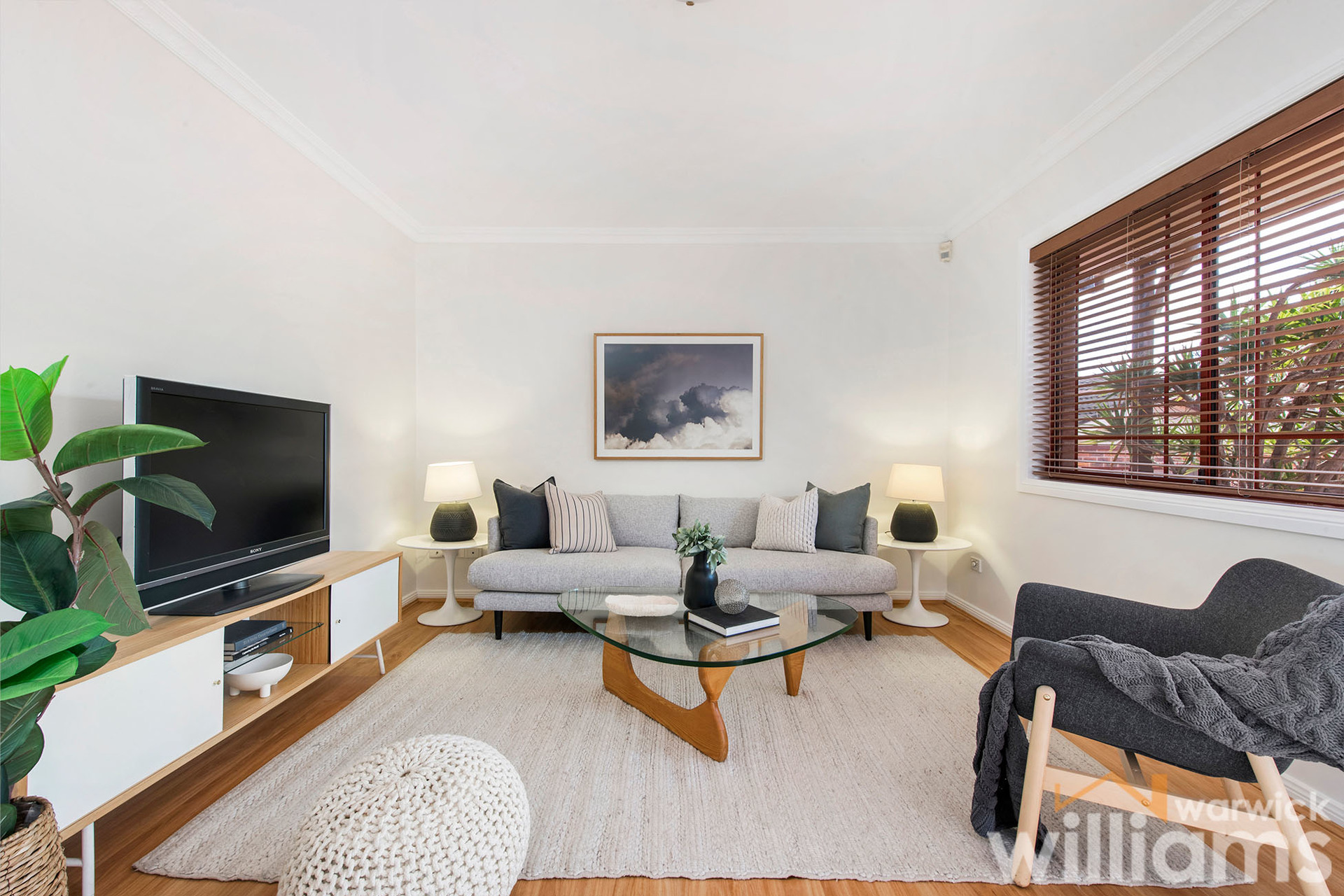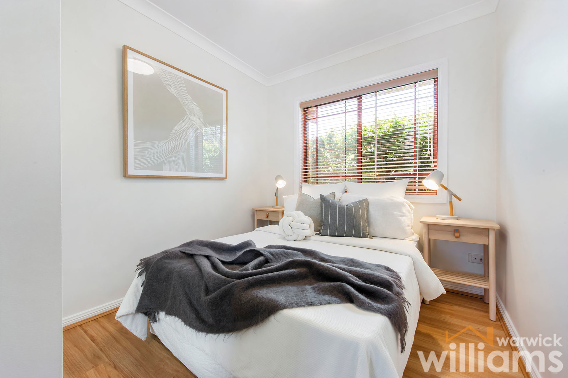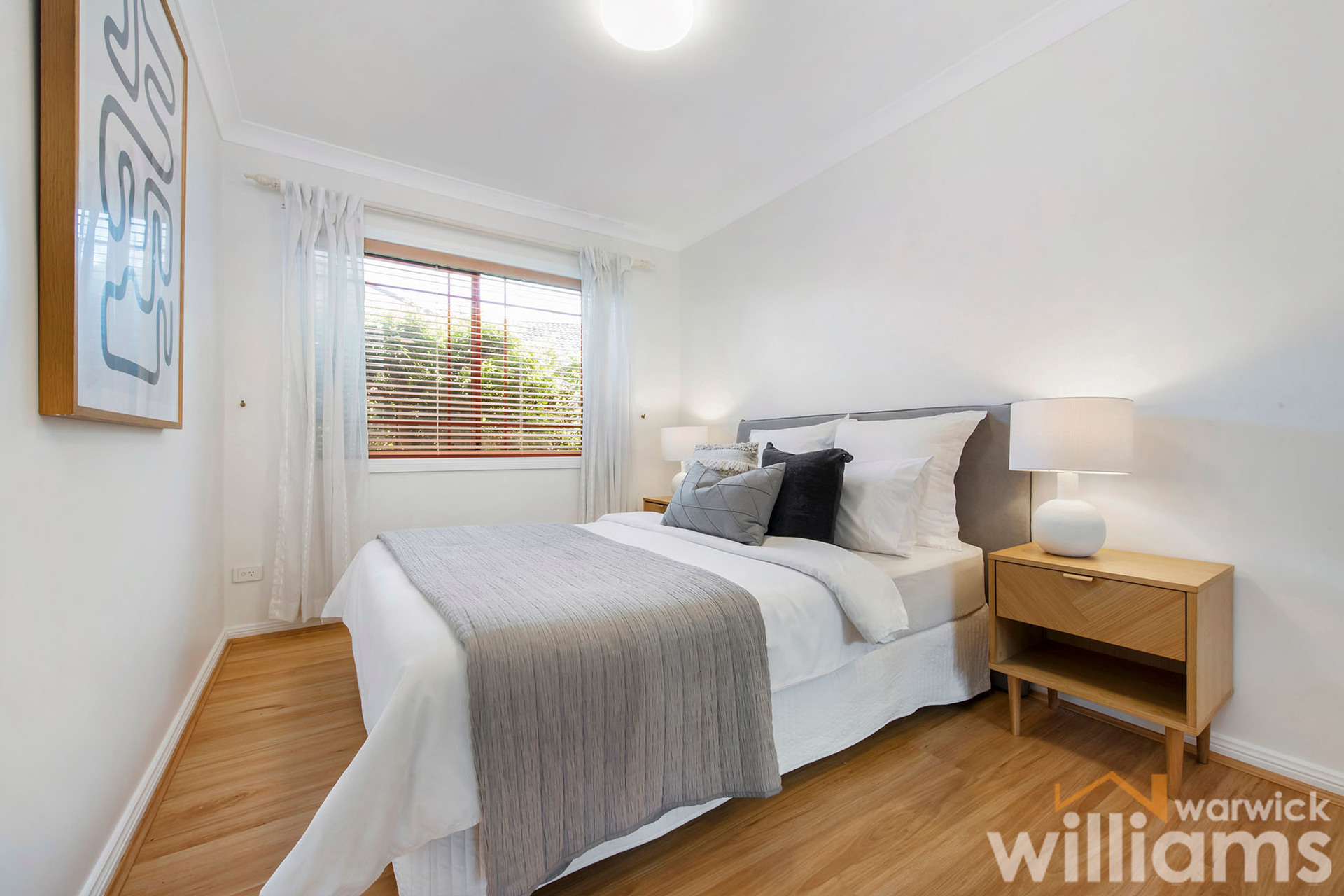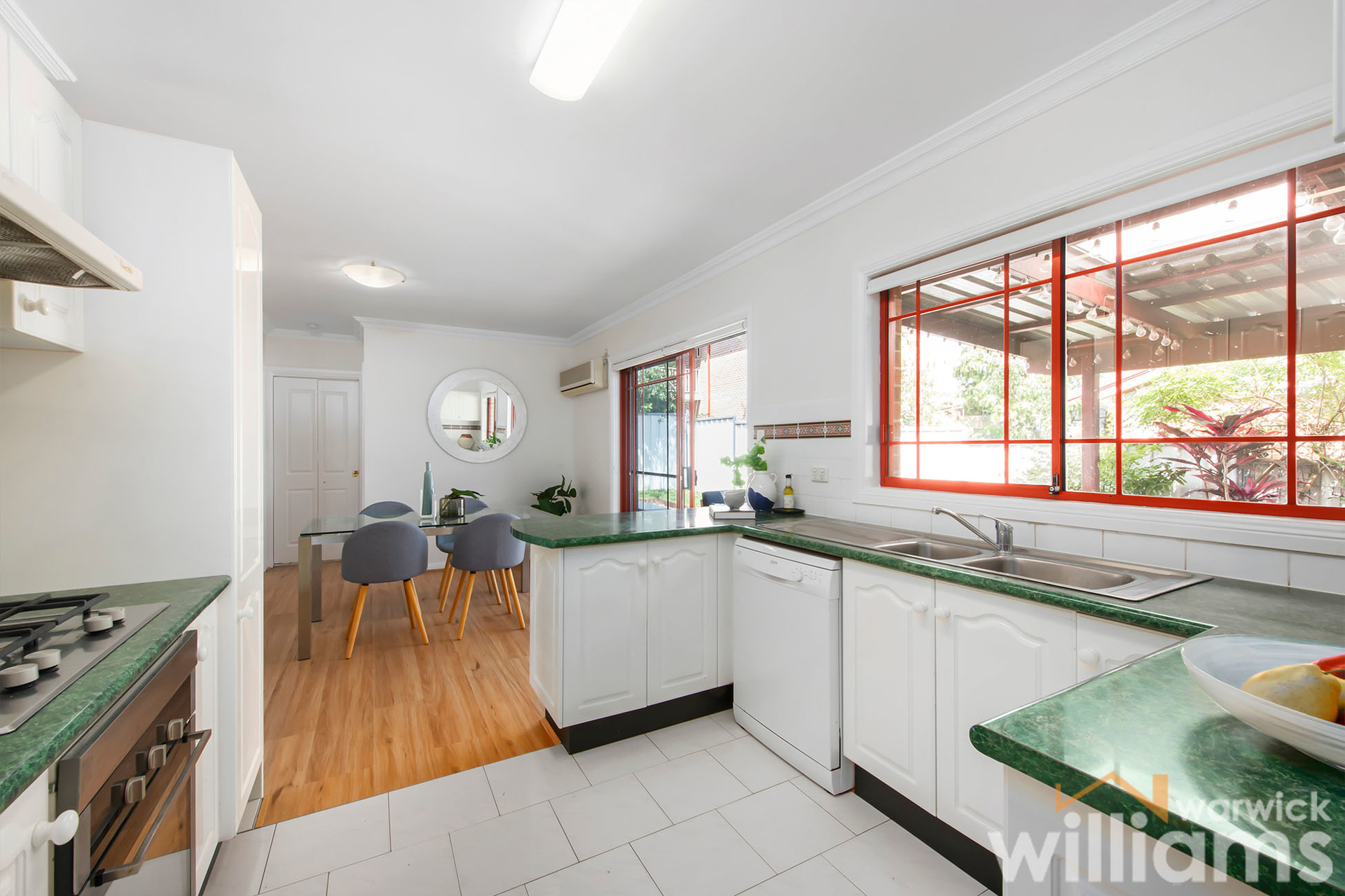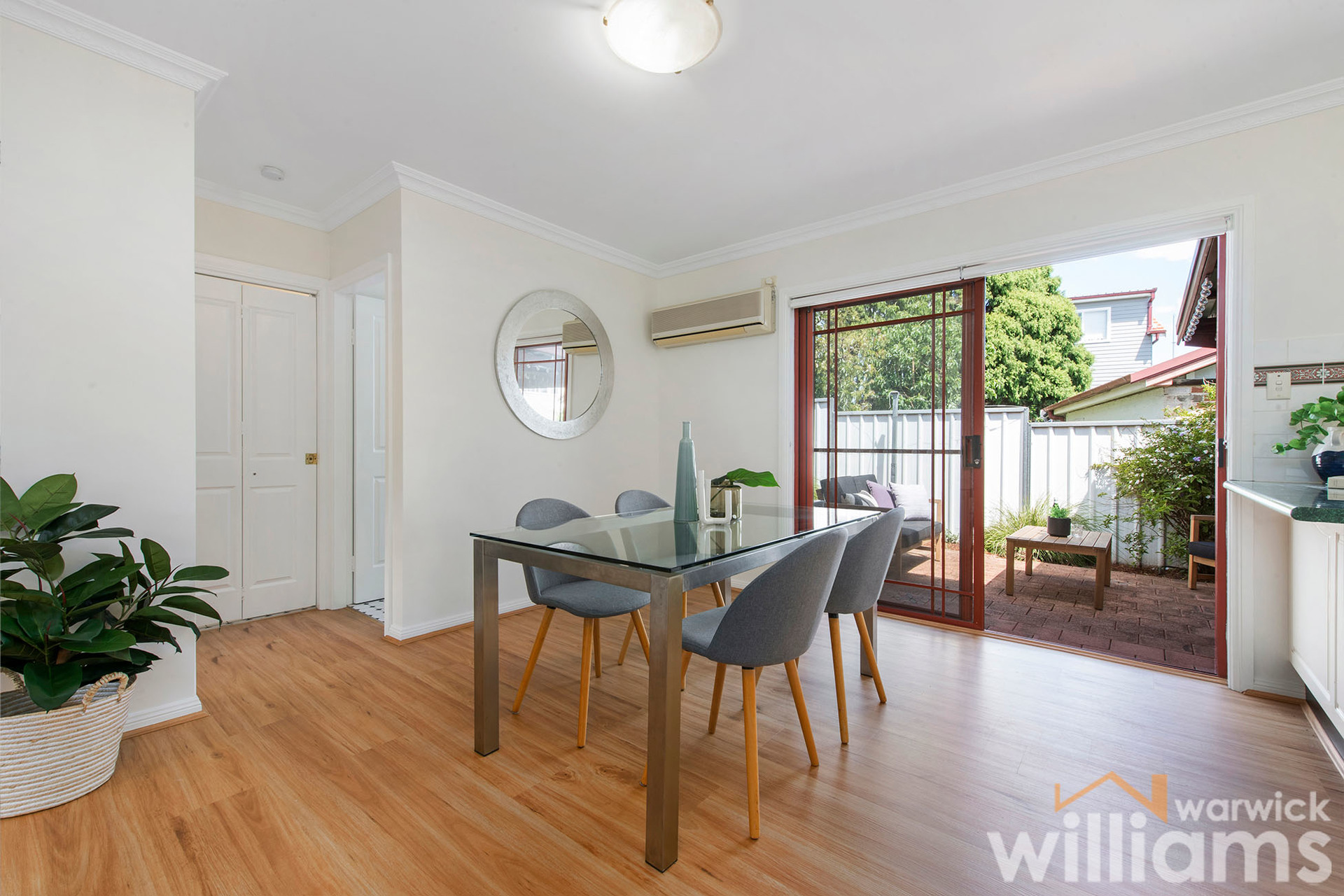 • Single-level two-bedroom villa with level entry in a quiet complex of only 6 • Freshly painted interiors with a bright and spacious easy-care layout • Two queen-sized bedrooms both with mirrored built-in robes • Modern bathroom includes bath, separate shower, and vanity • Large living space with flow through to separate dining area • Full-sized kitchen featuring electric cooking, dishwasher, and storage • Sunny alfresco courtyard with covered dining terrace • Air conditioning. Polished timber floorboards. Internal storage • Single-space lock-up garage with rear access from the courtyard