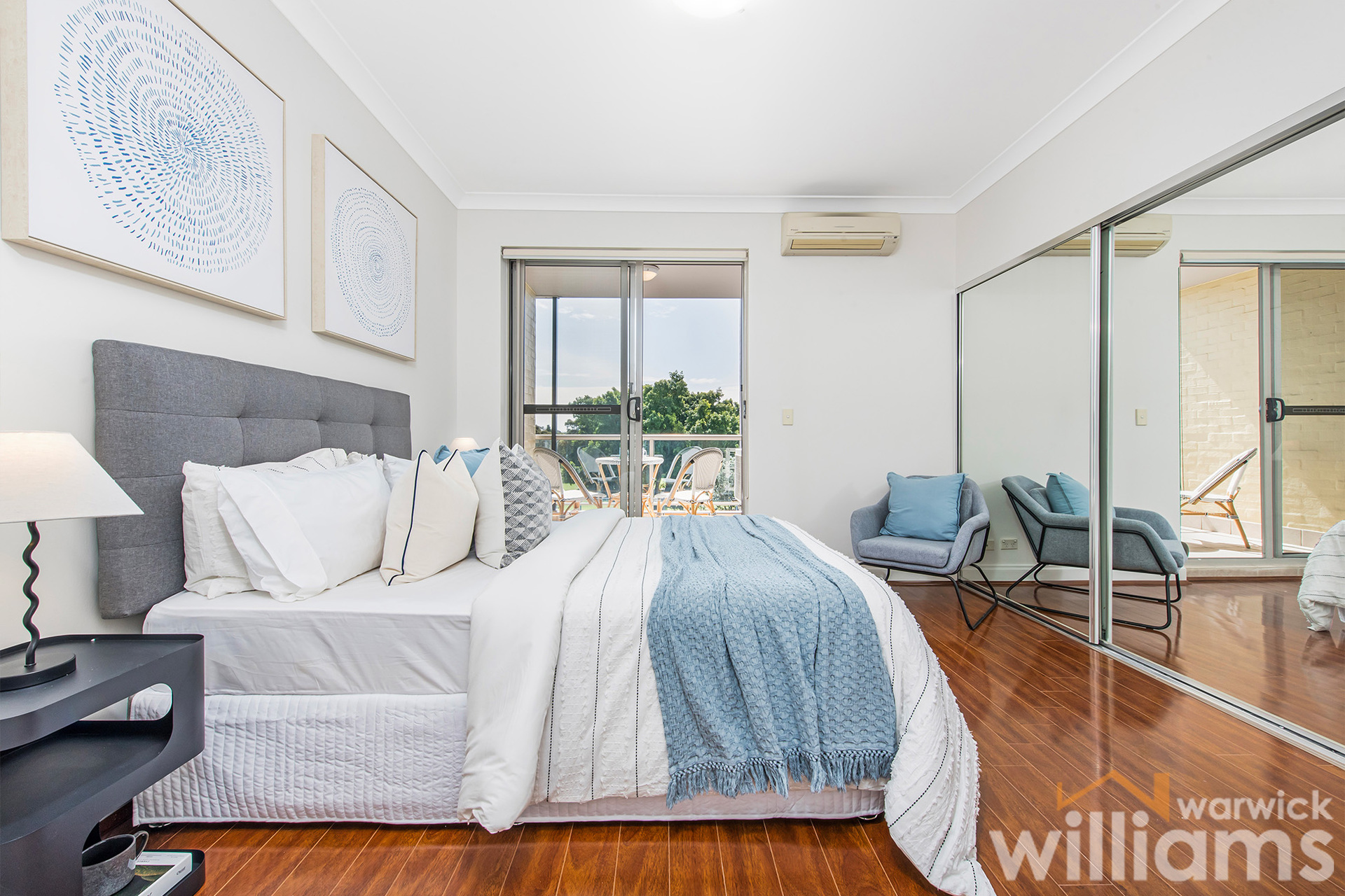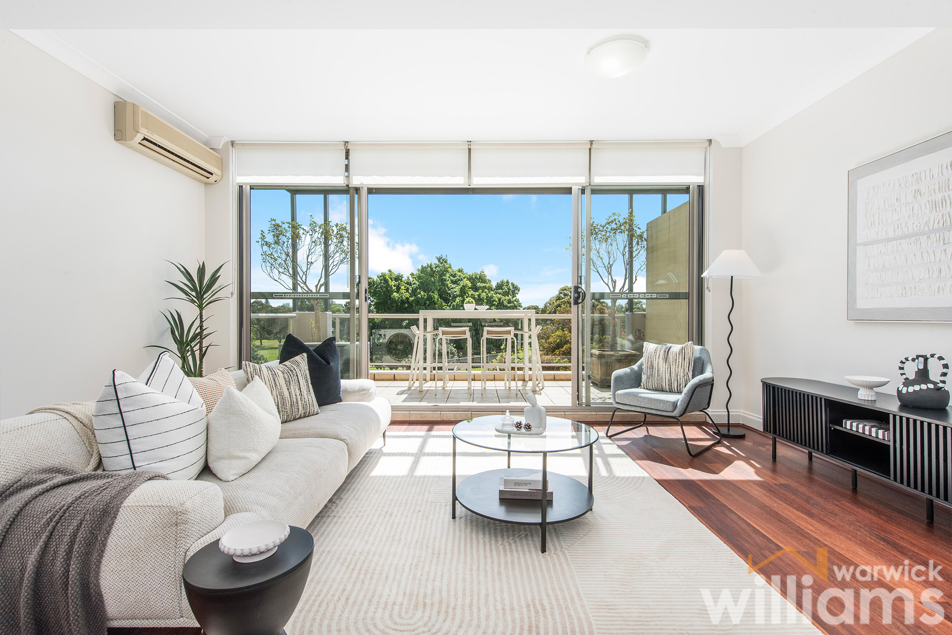 Spacious Two-Bedroom Apartment in a Tranquil, Leafy Setting Spacious Two-Bedroom Apartment in a Tranquil, Leafy Setting With gorgeous views across Barnwell Park Golf Course, this freshly painted apartment offers an enviable bayside lifestyle with superior comfort and convenience. Set in an elevated position in the sought-after Kings Bay complex, the two-bedroom home features a flowing layout with generous proportions and an abundance of natural light. Two queen sized bedrooms include a sumptuous master with modern ensuite, and access to a private, sun-drenched balcony. Ideal for relaxed social occasions, the large living and dining space enjoys a seamless connection to an outdoor entertainer's terrace with a leafy vista and water glimpses. Located only 190m to Canada Bay Club and 650m to CBD buses, there's also the added benefit of a secure, double lock up garage. Resort style facilities include onsite swimming pool, gym, play park, and BBQ area.